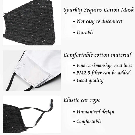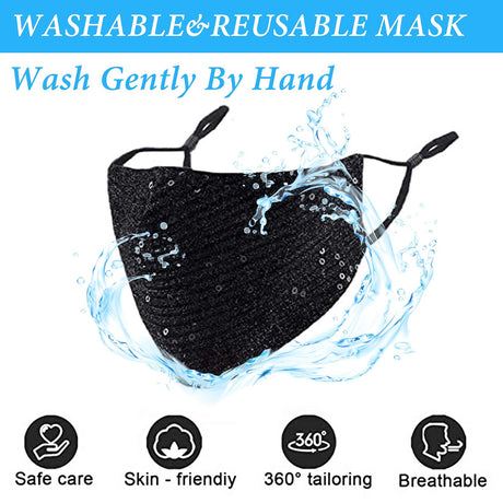 MLGDA Sparkly Sequin Face Cover Glitter Cotton Sequins Masc Masquerade Face Covering (B)