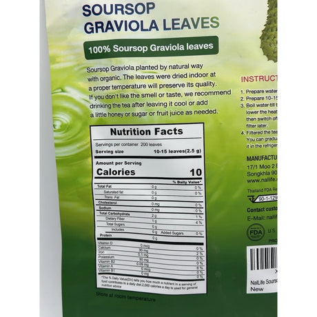 NalLife Organic Dried 100% Soursop Graviola Leaves 200 Leaves Exp Date 7/2026