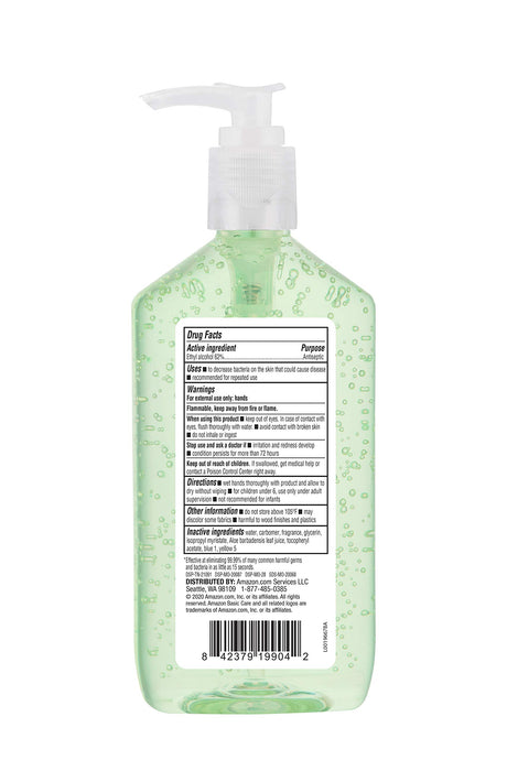 Amazon Basic Care - Aloe Vera Hand Sanitizer 62%, 12 fl oz (Pack of 6)
