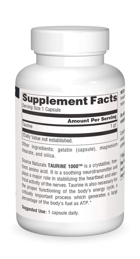 Source Naturals Taurine, Soothing Neurotransmitter*, 1000mg - 240 Capsules