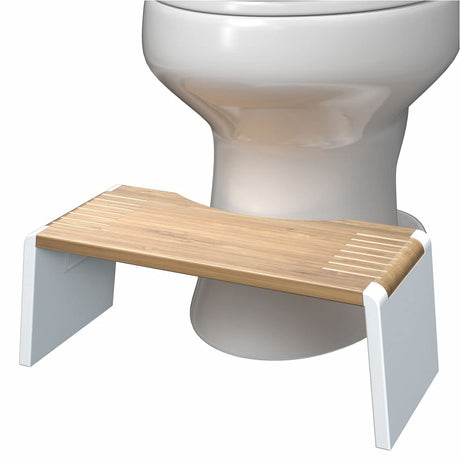 Squatty Potty Stockholm Folding Bamboo Toilet Stool 7" Collapsible, Brown and White, 1 Count