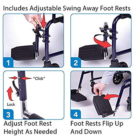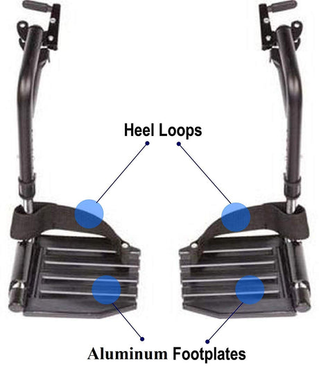 Wheelchair Swingaway Legrest Aluminum Footplates & Heel Loops (Pair) (Black)