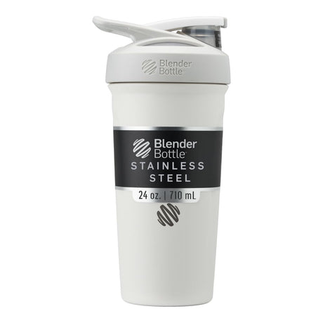 BlenderBottle Strada Shaker Cup Insulated Stainless Steel Water Bottle with Wire Whisk, 24-Ounce, White