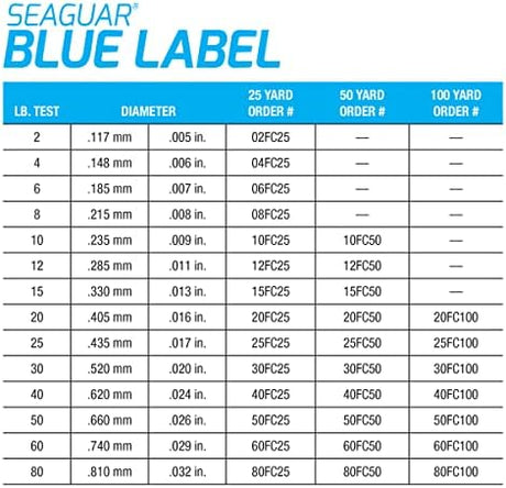 Seaguar Blue Label Fishing Leader Line for Saltwater, 100% Fluorocarbon, Clear, Multiple Sizes