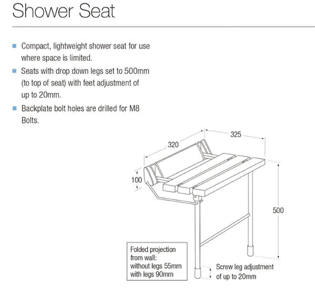 Taps2Traps® Wall Mounted Fold Down Shower Seat With Legs