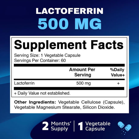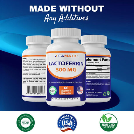 Vitamatic Lactoferrin 500mg – 60 Vegetable Capsules Promotes Healthy Immune Function