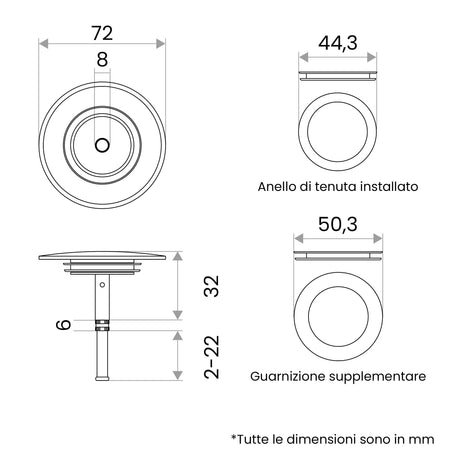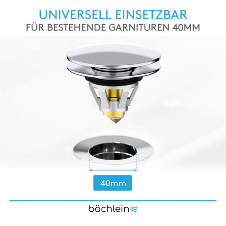 Bächlein Universal Badewannenstöpsel - Abfluss-Stopfen [PVD Gold] - inkl. Ersatzdichtung