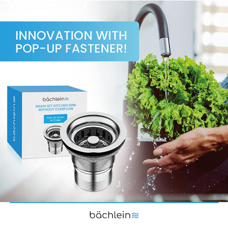 Bächlein Sink Drain Set (WITH OVERFLOW Universal Size Ø 114, Polished Stainless Steel)