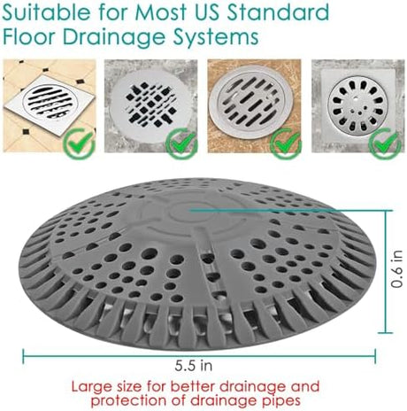 Shower Drain Hair Catcher, 2 Pack 5.5in Shower Hair Catcher Large Premium Silicone Drain Protector Strainer, Shower Drain Cover for Shower Room, Floor Drain, Bathroom Sink, Dark Grey