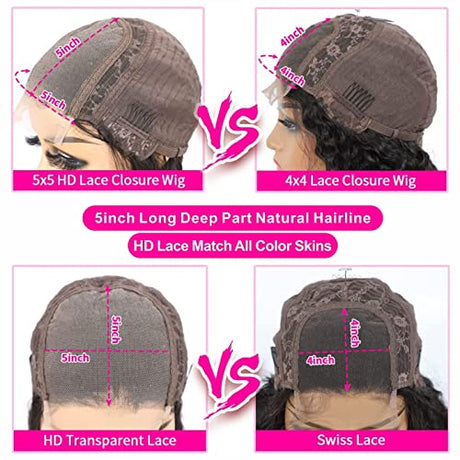 Aaliweya 5x5 HD Transparent Lace Closure Wigs Human Hair Body Wave 5x5 Closure Wigs for Women 150% Density Glueless Wigs Pre Plucked Soft and Smooth Natural Black Color 18 inch
