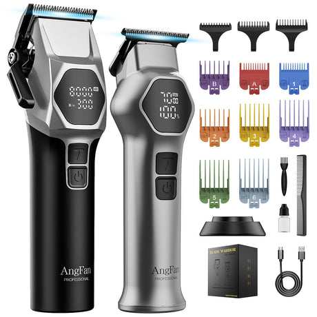 ANGFAN Professional Hair Clippers for Men - 8000RPM Brushless Motor & 440C Steel Blades, Barber-Grade Cordless Clippers & Trimmer Set for Fade Designs, Hair Cutting Tools for Professional Barbers