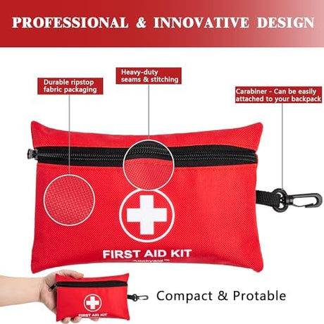 Mini First Aid Kit - 140 Piece Small First Aid Medical Kit for Car, Home, Office, Travel, Camping, Sports, Outdoor, School - Emergency First Aid Supplies and Survival Kit
