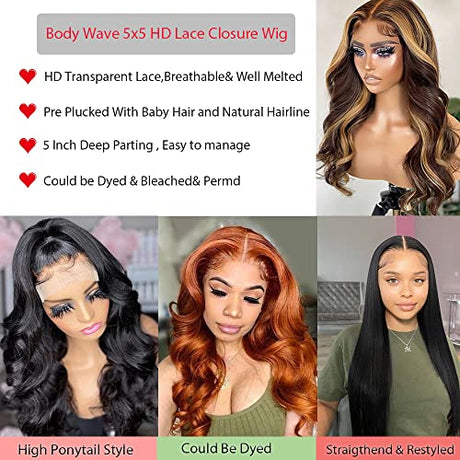 BELIANA 5x5 HD Lace Closure Wigs Human Hair Pre Plucked 5X5 Body Wave Lace Front Wigs Human Hair 180% Density Brazilian Virgin Human Hair Wigs for Black Women Natural Color (Body Wave Wig, 18 Inch)