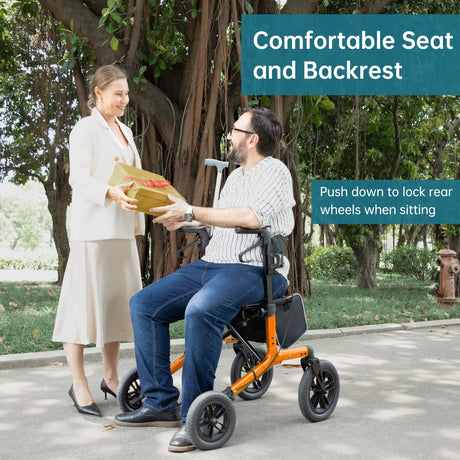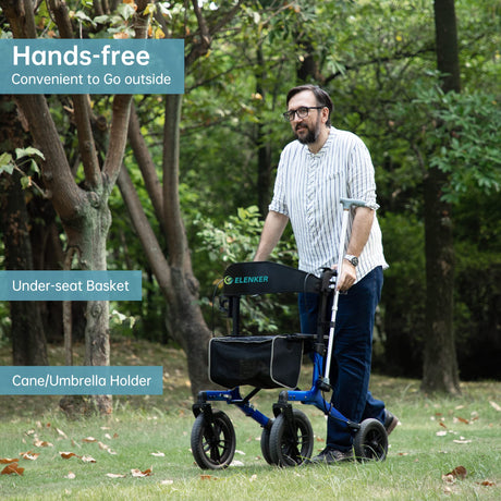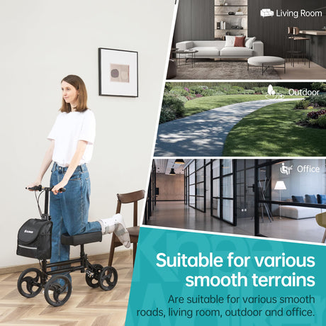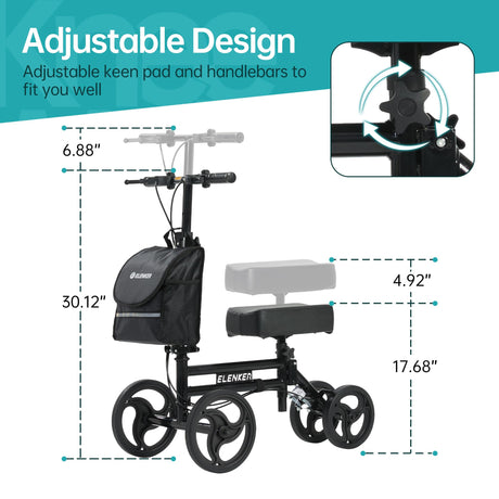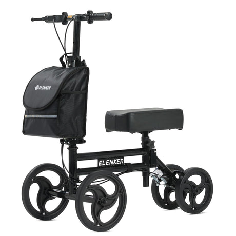 ELENKER Knee Scooter with Basket Dual Braking System for Ankle and Foot Injured Bright Black
