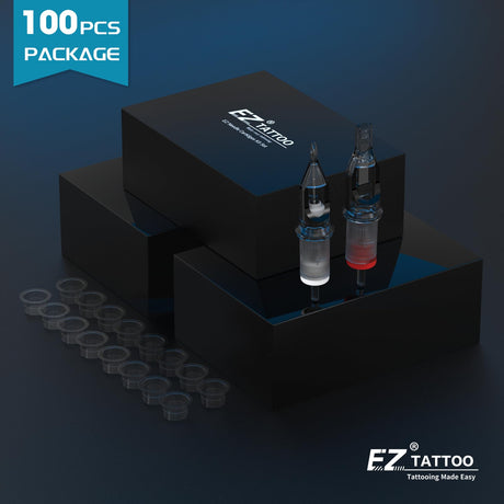 EZ Tattoo Cartridge Needles Assorted - 100Pcs Mixed (3RL 5RL 7RL 5RS 7RS 7M1 9M1 11M1 9RM 15RM) Standard Bugpin Tattoo Needles Cartridges for Tattoo Machine Gun - Revolution