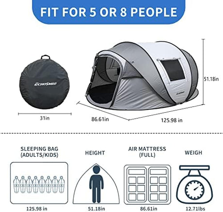 EchoSmile Camping Instant Pop Up Tent, 2/4/6/8/10 Person, Water Resistant Dome, Easy Setup for Camping Hiking and Outdoor, Portable with Carry Bag, 3 Season