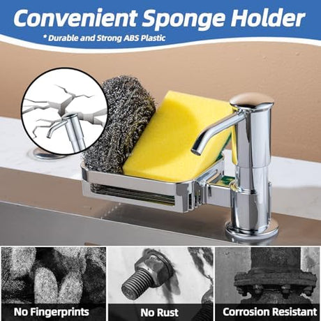 Soap Dispenser for Kitchen Sink with Sponge Holder, Built in Soap Dispenser Pump, Under Counter ABS Pump Head with 38" Extension Tube Kit, Good Suction Power, Chrome