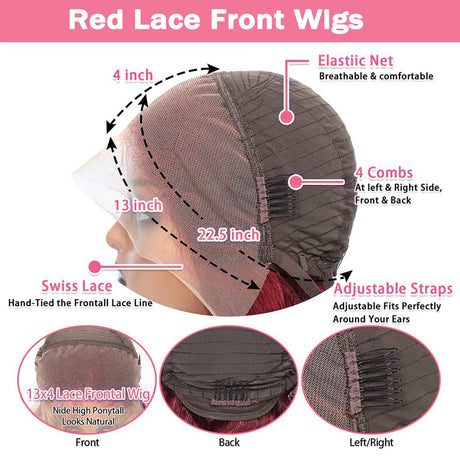 99j Burgundy Lace Front Wigs Human Hair 13x4 Body Wave Lace Front Wigs Human Hair Pre Plucked Glueless Red Wig Wine Red Lace Front Wigs Human Hair Wigs for Women 180 Density 26 Inch