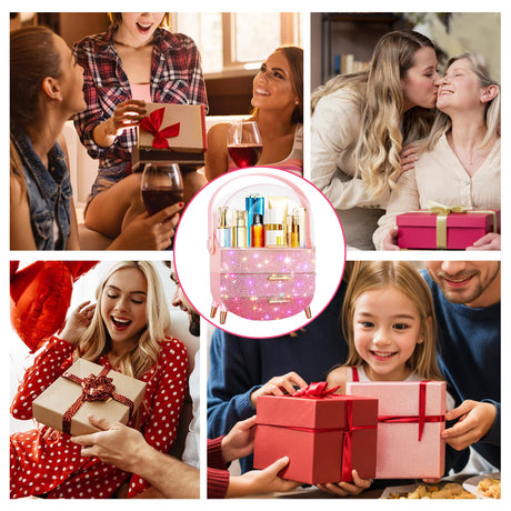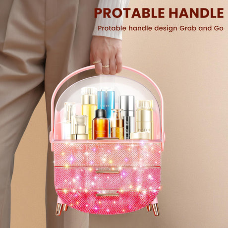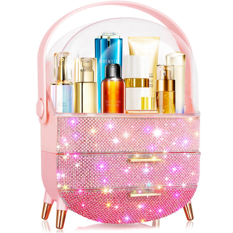 Bling Makeup Organizer for Teen Girl Gift,Hollywood Vanity Makeup Storage Box for Girl Birthday Gift,Practical Gift for Daughter,Bathroom Organizer,Skincare Organizer (Triple Pink)