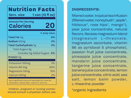 Recess Mood Magnesium & Adaptogen Drink, Relaxation Beverage, 12 Ounce (Tropical Bliss, 12 Pack)