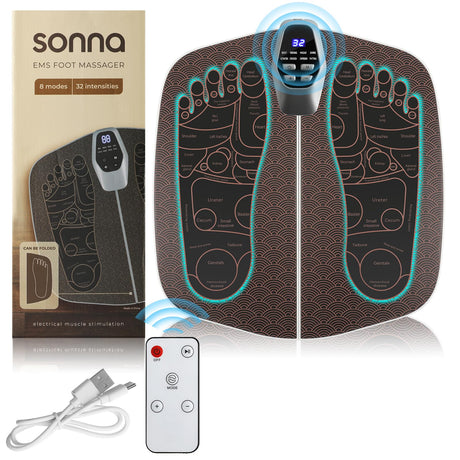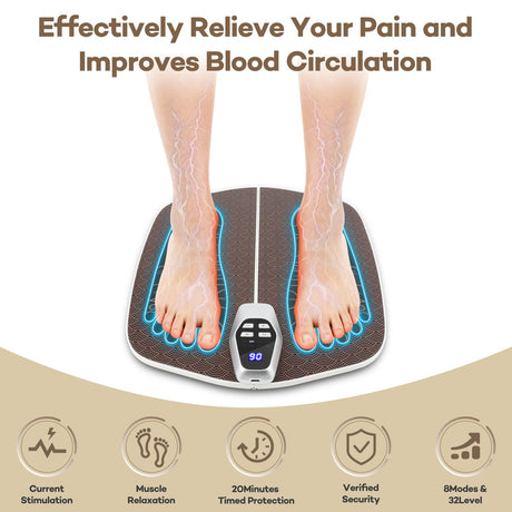 Foot Massager Mat for Neuropathy,EMS Foot Massager for Circulation and Pain Relief, Foldable Feet and Calves Massage Machine with 8 Modes and 32 Intensity Levels for Muscle Relaxation,FSA HSA Eligible