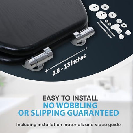 Sanilo Soft Close Toilet Seat ELONGATED, Quiet and Slow Close Lid and Seat, Strong Bumpers and Hinges, Black Wood