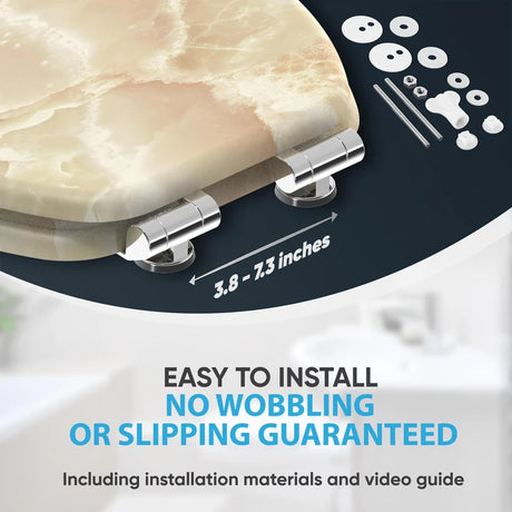 Sanilo Soft Close Toilet Seat ELONGATED, Quiet and Slow Close Lid and Seat, Strong Bumpers and Hinges, Marble Nature