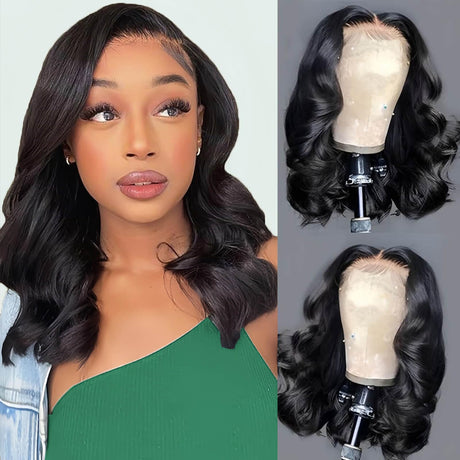 Bob Wig Human Hair Glueless Wigs Human Hair Pre Plucked Pre Cut Body Wave 5x5 HD Transparent Closure Wigs 180% Density 100% Brazilian Virgin Hair Short Wigs for Black Women (10 inch)