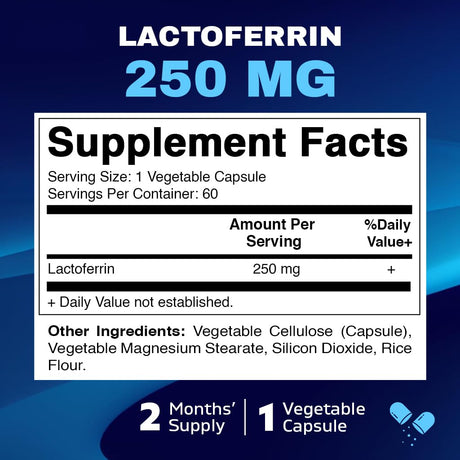 Vitamatic Lactoferrin 250mg – 60 Vegetable Capsules Promotes Healthy Immune Function*