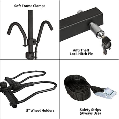 WEIZE Hitch Bike Rack, Wobble Free Smart Tilting Folding Bicycle Car Racks for Standard, Fat Tire and Electric Bike, 2-Bike 160 lbs Capacity, 2-inch Receiver