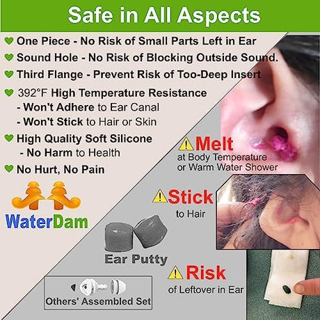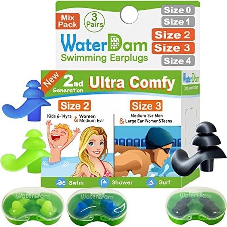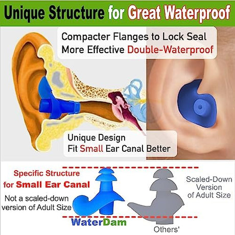 WaterDam Swimming Ear Plugs Great Waterproof Ultra Comfy Earplugs Prevent Swimmer's Ear