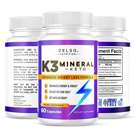 Zelso K3 Mineral Capsules - 60 Count, Advanced Ketogenic Weight Loss and Energy Support Formula, Natural Ingredients, GMP Quality, Vegan and Eco-Friendly