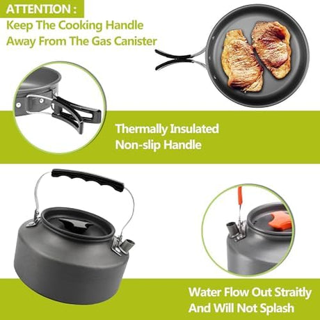 aiGear Camping Cookware Mess Kit, Non-Stick Camping Pan Pot Kettle, Lightweight Aluminum Camping Utensils, Collapsible Portable Camping Cooking Set for Outdoor Cooking Hiking Picnic