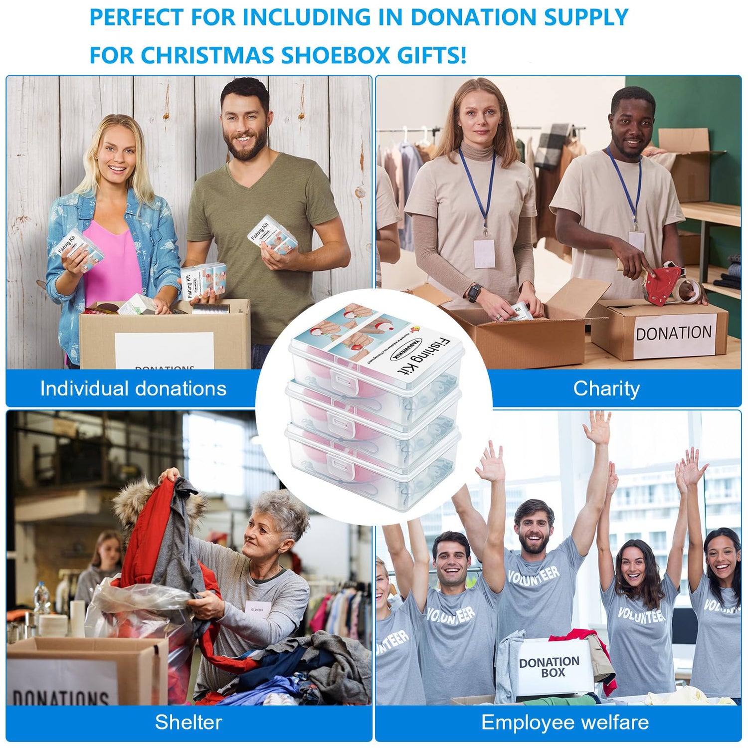 - Emergency Survival Gear: You will get 12 set mini fishing kit.Each kit includes essential items such as 1 scissors,33 ft fishing line,2 bobbers,6 fishing hooks, about 10 fish sinkers,1 leader, and 2 flies. Whether you're in a survival scenario or simply enjoying a day out in nature, this compact fishing tackle kit has everything you need to catch fish and ensure your survival