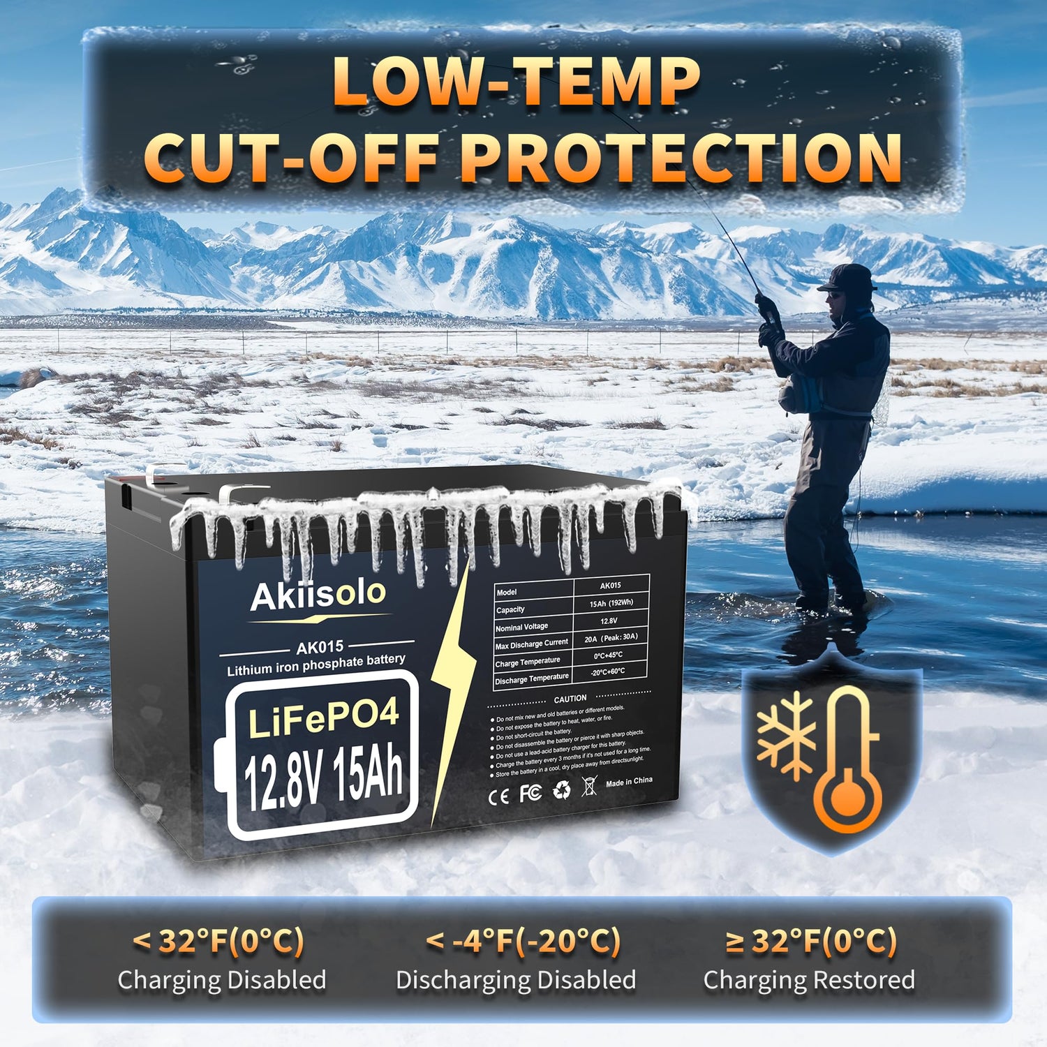 - 【Lightweight and Easy to Carry】Akiisolo 12.8V 15Ah LiFePO4 battery is 67% lighter than traditional lead-acid options, making it ideal for portable power needs like RV camping, off-grid adventures, or outdoor activities. Its compact design fits seamlessly into your setup without compromising power.