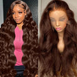 13x6 Chocolate Brown Lace Front Wig Human Hair HD Transparent Body Wave Lace Front Wigs Human Hair Pre Plucked Glueless Frontal Brown Wig Human Hair 180 Density #4. (13X6 Chocolate Brown Wig, 28inch)