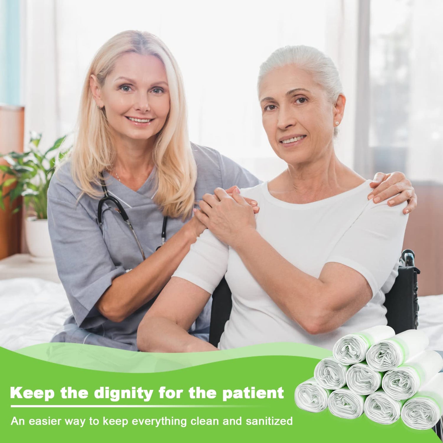 - Promotes a Clean Environment: Make cleanup simple. No more cleaning fluids and dirty buckets or smelly bedpans. It eases the burden on caregivers and promotes a clean environment