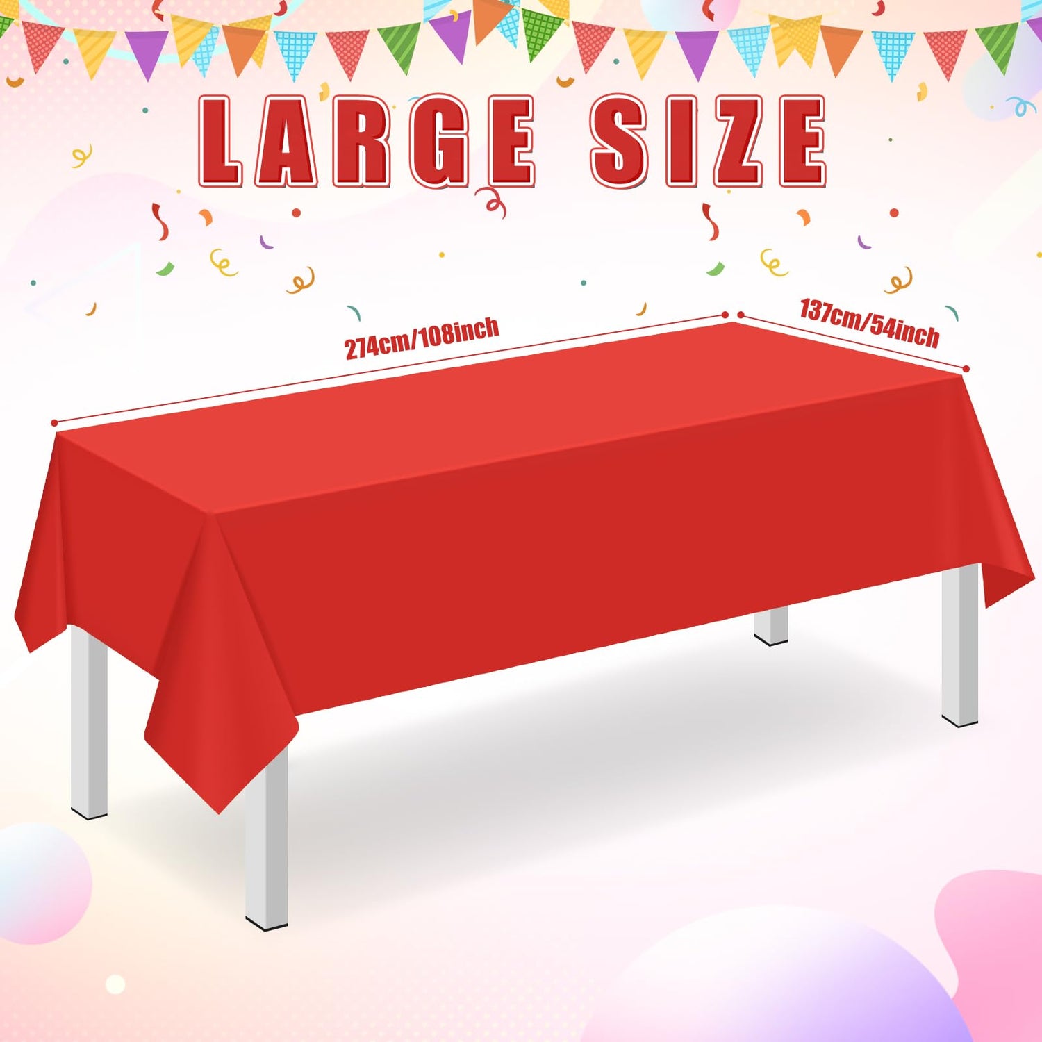 - Easy Cleanup: Our red disposable tablecloths are waterproof and stain-resistant, which will keep your tables protected from splashes of juice, grease, and dirt. You don't have to worry about cleaning up the mess after the party, just toss them away and save time, allowing you to fully enjoy the party with your friends and family.