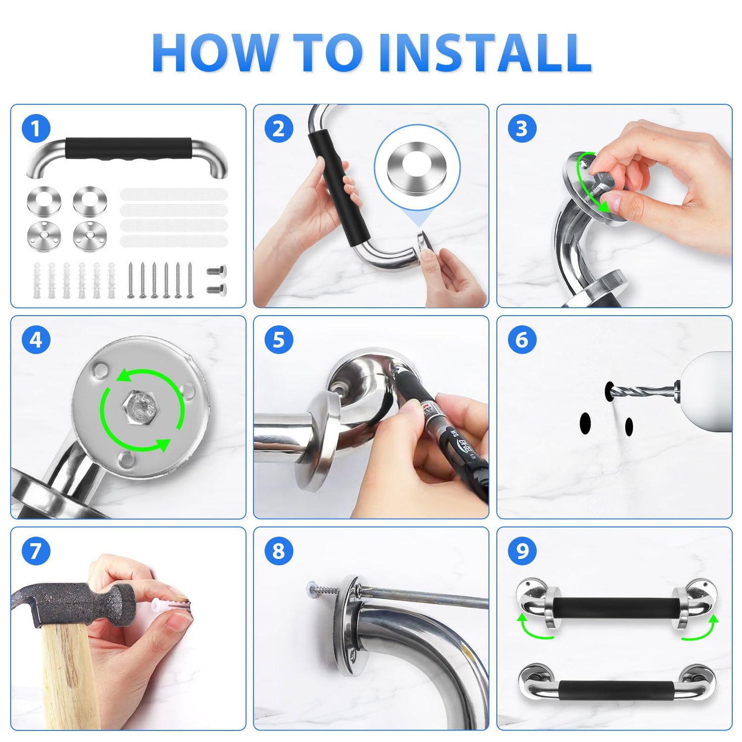 - EASY INSTALLATION: Grab bars for wall allows for easy, secure installation at any angle with our assembly instructions, concealed screw design to allows you to cover any unsightly screw holes to keep your bathtubs toilet and showers clean and beauty.