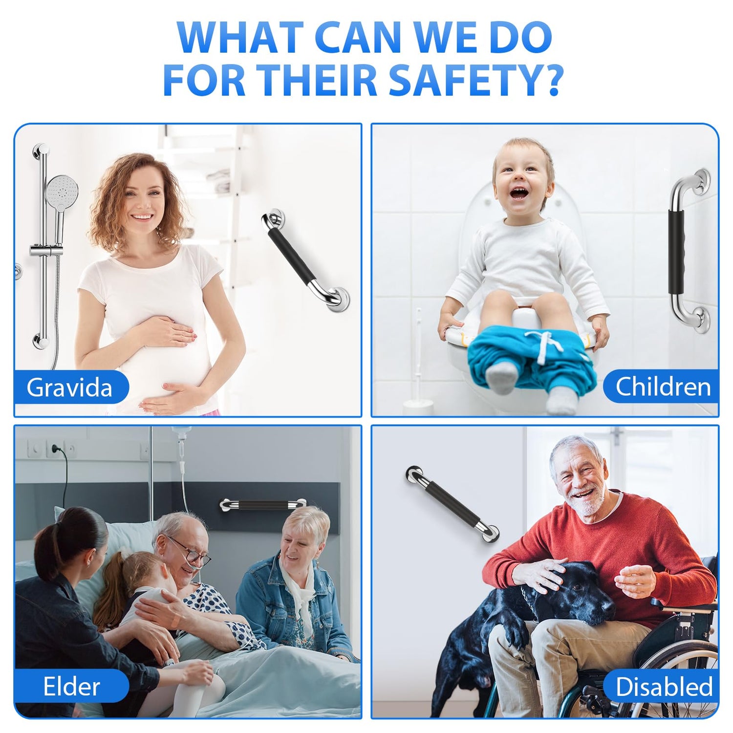 - SUPERB MATERIAL: The shower grab bars for elderly is made of stainless steeland silicone, waterproof and sturdy. Pulling up to 500 pounds,the elderly, seniors, Handicap, pregnant, the injured, children provide stability and balance, and create a safe bathroom and staircase experience for your family.These handicap grab bars are only used to assist and properly support part of the weight of the body, not all of it.