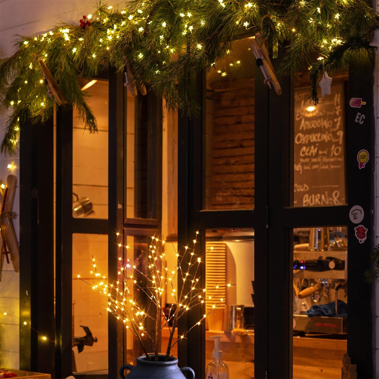 - 【High Quality】: there are 100pcs mini led bulbs in total; soft warm white light; the height of branches is about 31inch. Energy saving and stable lighting performance; ensuring a bright and vibrant display for your home. Please change batteries at once if the lights can't change setting or haif lights ON.