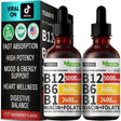 NUSAVA (2 Pack) Vitamin B12 Liquid Drops, Vitamin B Complex, Vegan B12 Sublingual 5000 mcg with Vitamin B6, Liquid B12 Methylcobalamin Supports Energy, Brain & Heart with 27,200 mcg Per Serving, 80 Servings