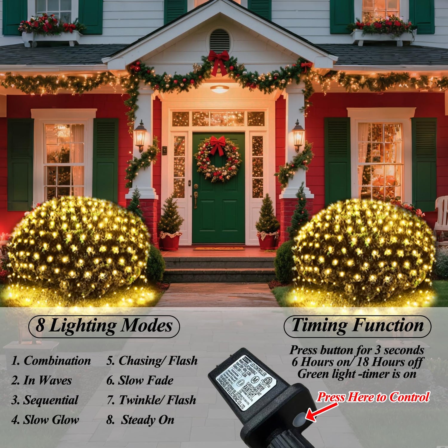 300LED Net Lights, 14.8ft x 5ft 8 Modes Connectable Christmas Outdoor String Mesh Lights, Waterproof Decorative Fairy Light Plug in for Xmas Tree Bushes Holiday Garden Wedding Party - Warm White