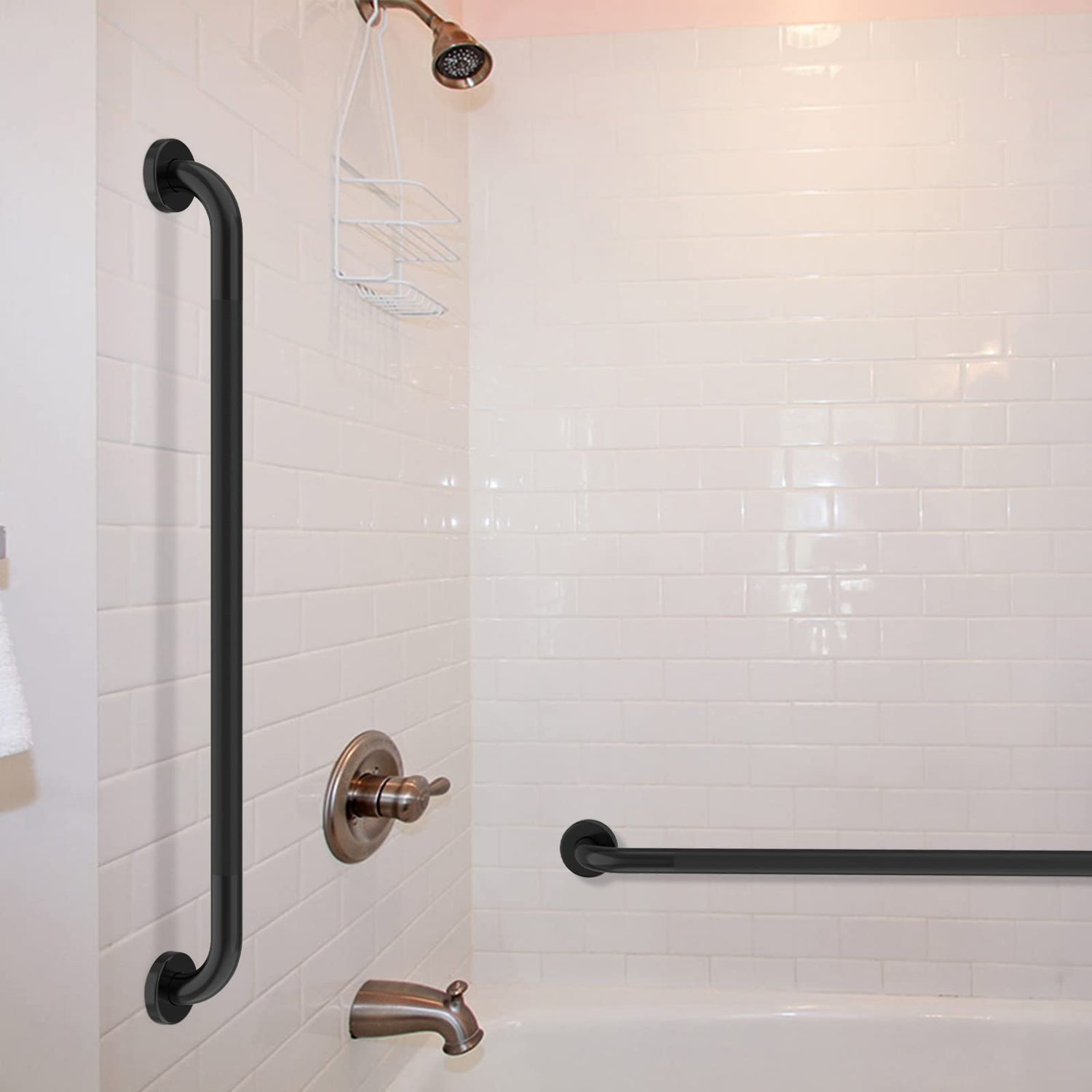 - Munzong 1 Pack 36 Inch Oil Rubbed black Stainless Steel Shower Grab Bar; the non slip knurled surface on middle is superior for safety when you have soapy hands and need to steady yourself
