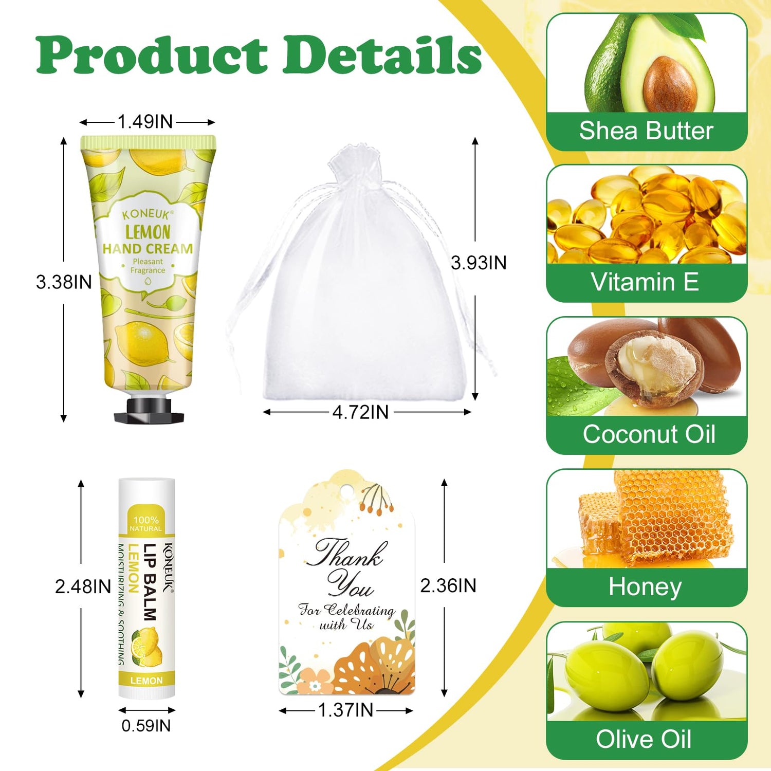 - 【36 Sets Thank You Gifts 】This thank gifts set includes 36pcs hand cream with 6 scents,36pcs lip balms with 6 scents,36pcs organza gift bags,36pcs thank you cards and 1pcs operation instruction.DIY exquisite gift sets and ample quantity,thank you to the guests who celebrate with you