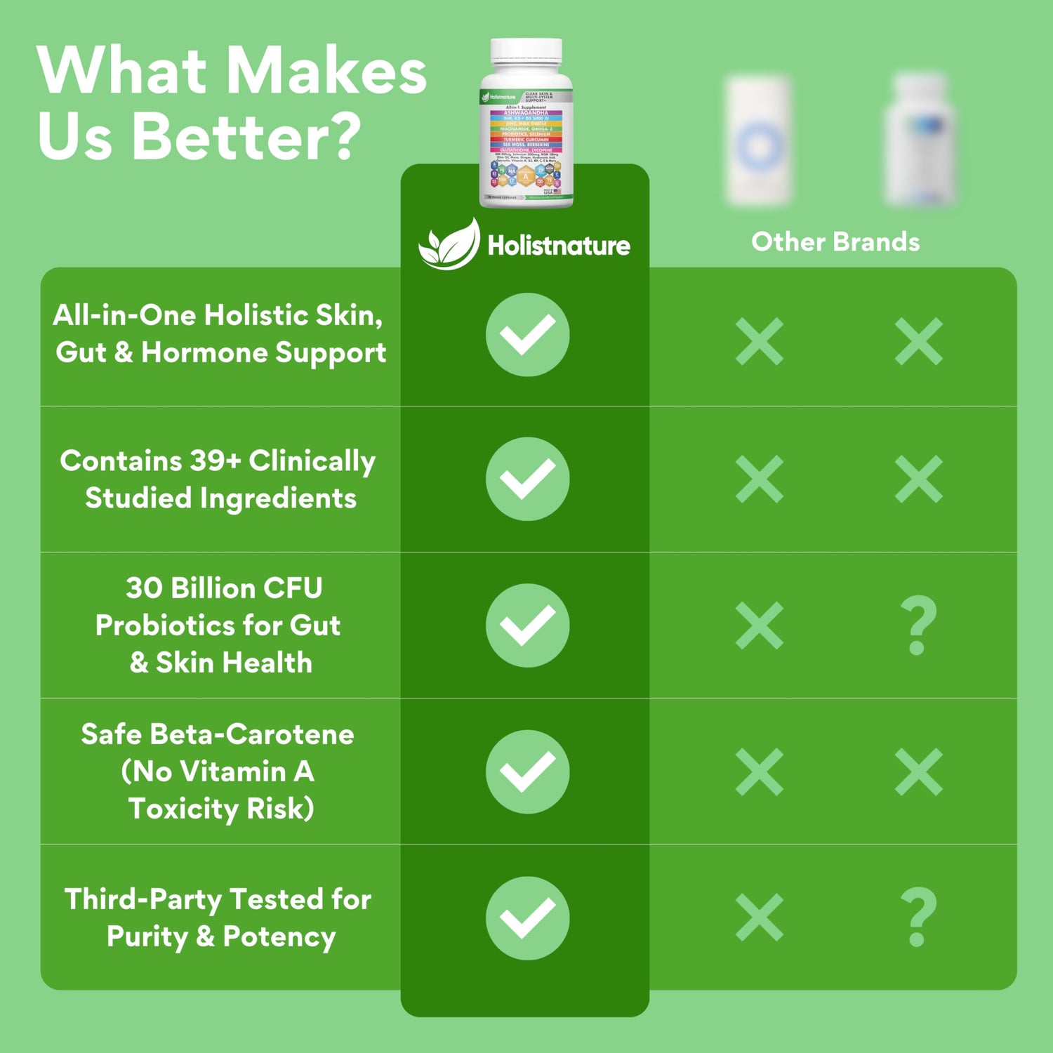 - ✅ CLEAN, TRUSTED FORMULA: Crafted in the USA in a GMP-certified, FDA-registered facility. Non-GMO, gluten-free, soy-free, and 100% drug-free. Holistnature delivers a clean, science-backed solution for clear skin, balanced hormones, and holistic wellness—without compromise.