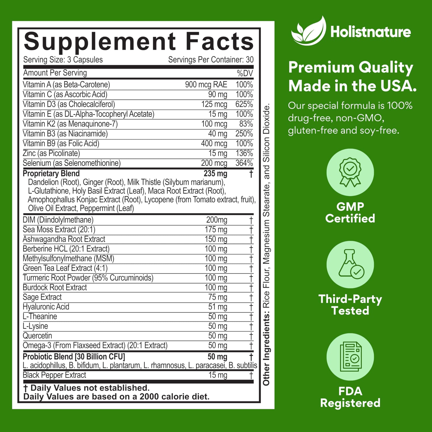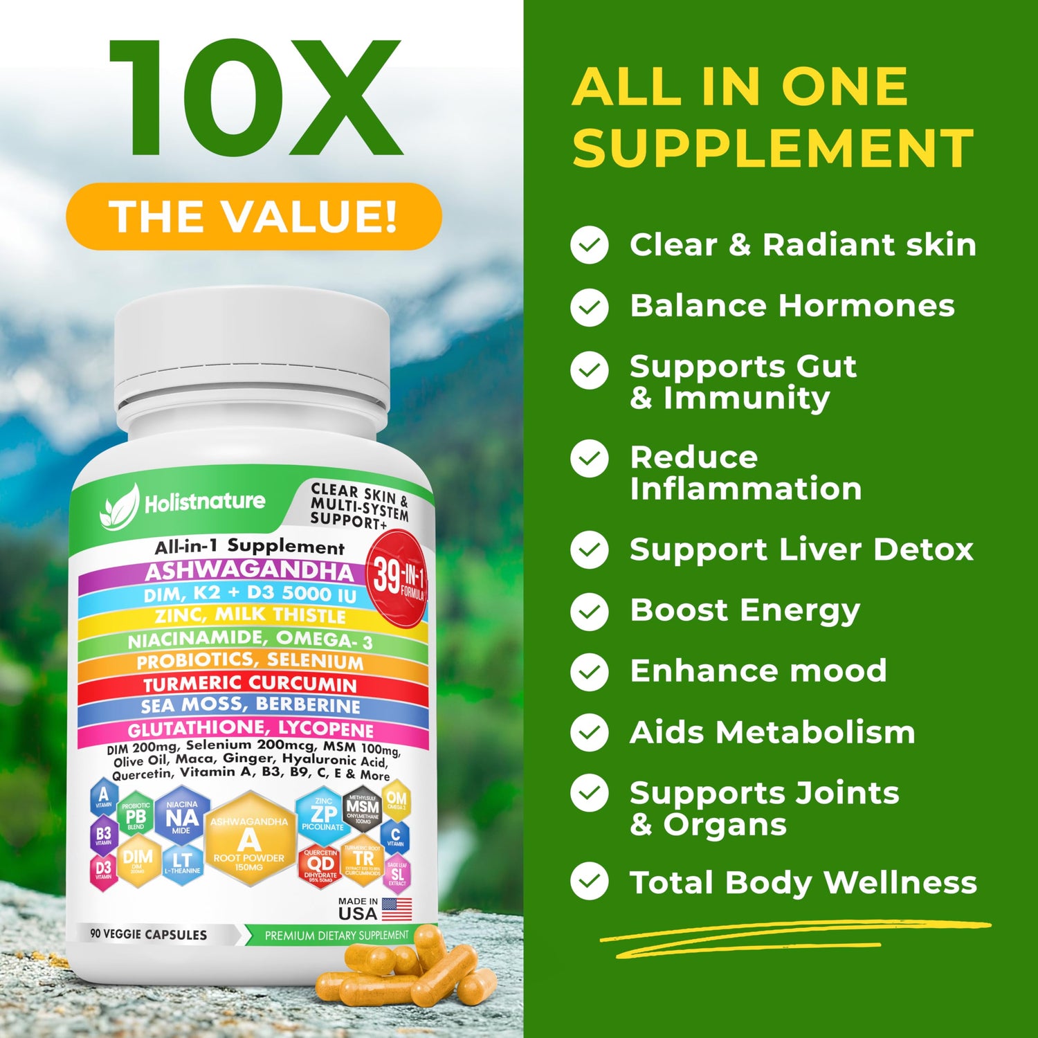 - ✅ALL-IN-ONE SOLUTION: More than just a skin supplement—Holistnature’s formula delivers true multi-system support. Featuring Turmeric, Milk Thistle, Sea Moss, Vitamin K2, MSM, L-Lysine, and more to promote detoxification, joint comfort, energy, metabolism, full-body vitality and sustained energy—delivering 10X value for holistic vitality.