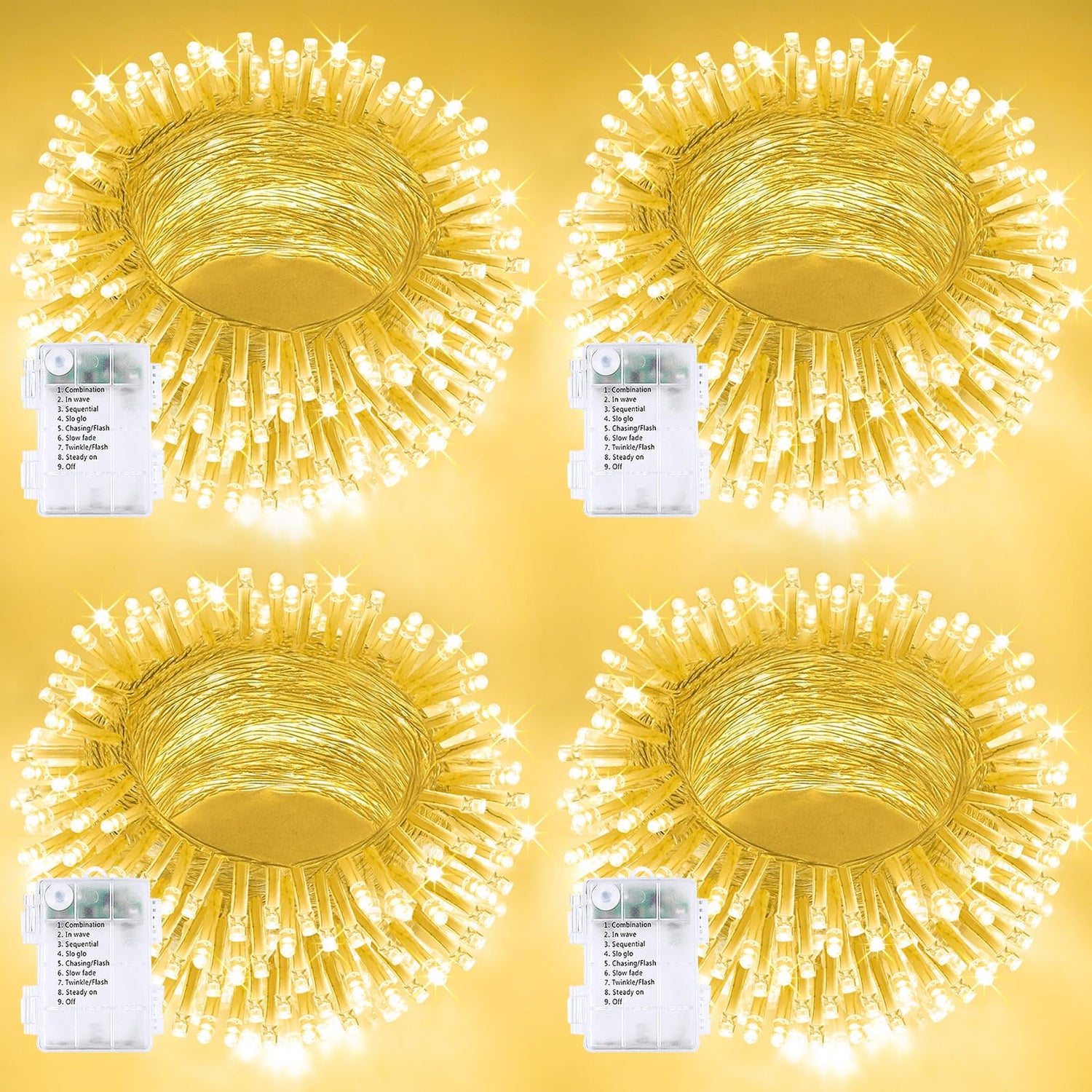 Details: 4 Pack String Lights Battery Operated with Timer, 132FT 400 LED Waterproof Battery Twinkle Lights, 8 Modes Fairy Light for Indoor Outdoor Party Bedroom Garland Tree Christmas Decorations (Warm White)