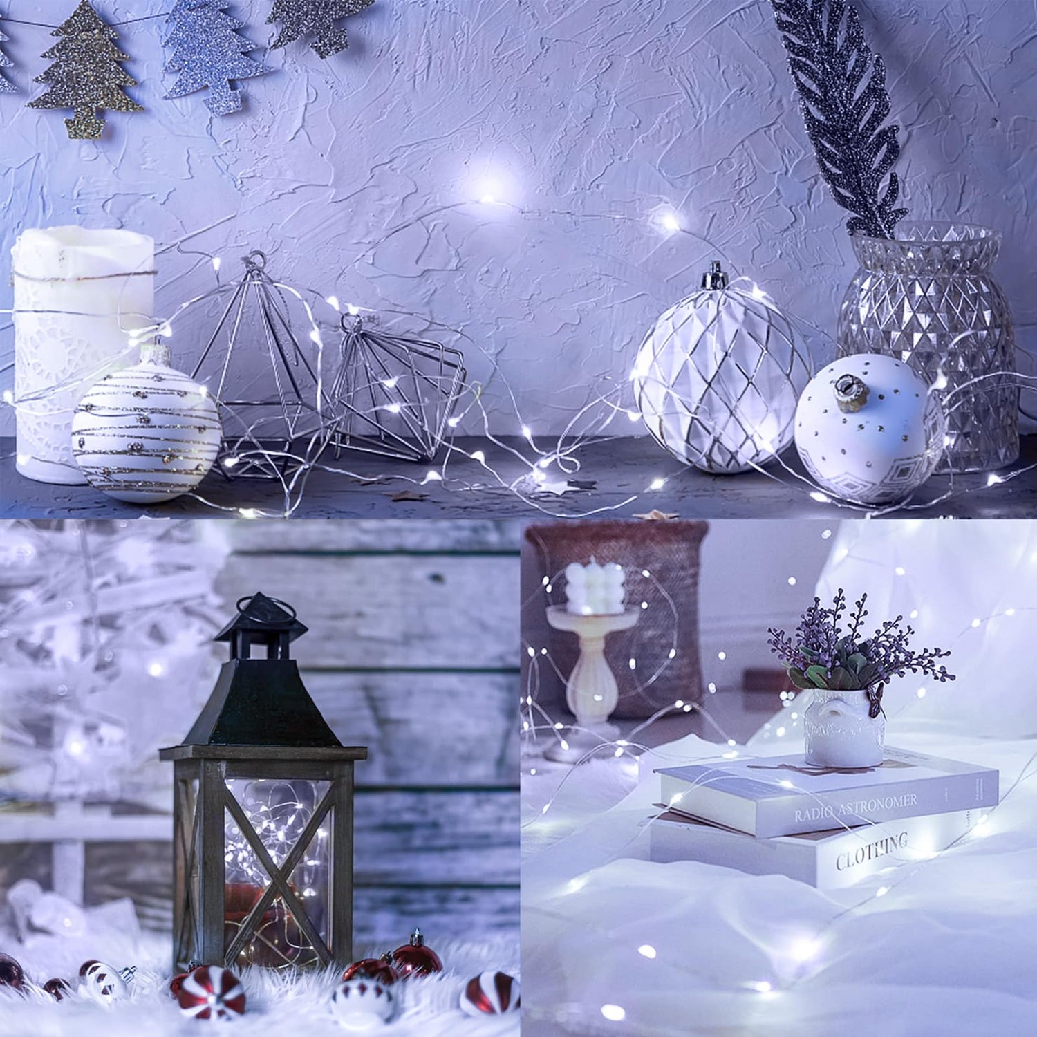 - Versatile Indoor & Outdoor Use: Slim, flexible silver wire battery operated fairy lights adapt to any space, from indoor bedrooms to outdoor gardens. Use them for Christmas, weddings, parties, or everyday decor. Twinkle lights battery operated provide consistent brightness for both indoor elegance and outdoor durability.