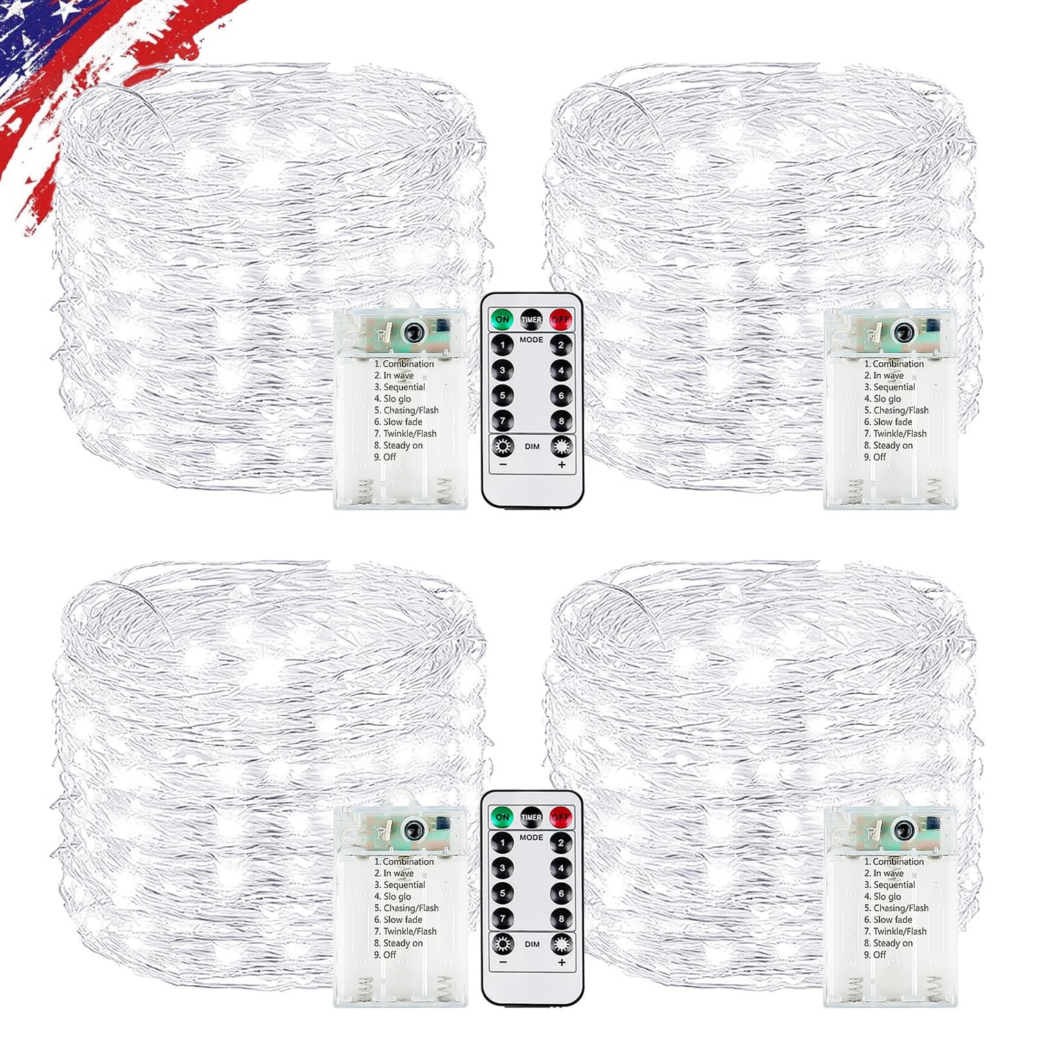 4 Pack White Fairy Lights Battery Operated with Remote, Waterproof 20FT 60LED Cuttable Twinkle Lights with Timer Indoor Outdoor, String Light for Bedroom, Classroom, Wedding, DIY, Christmas Décor